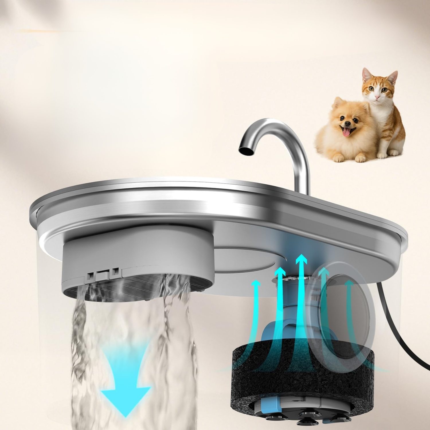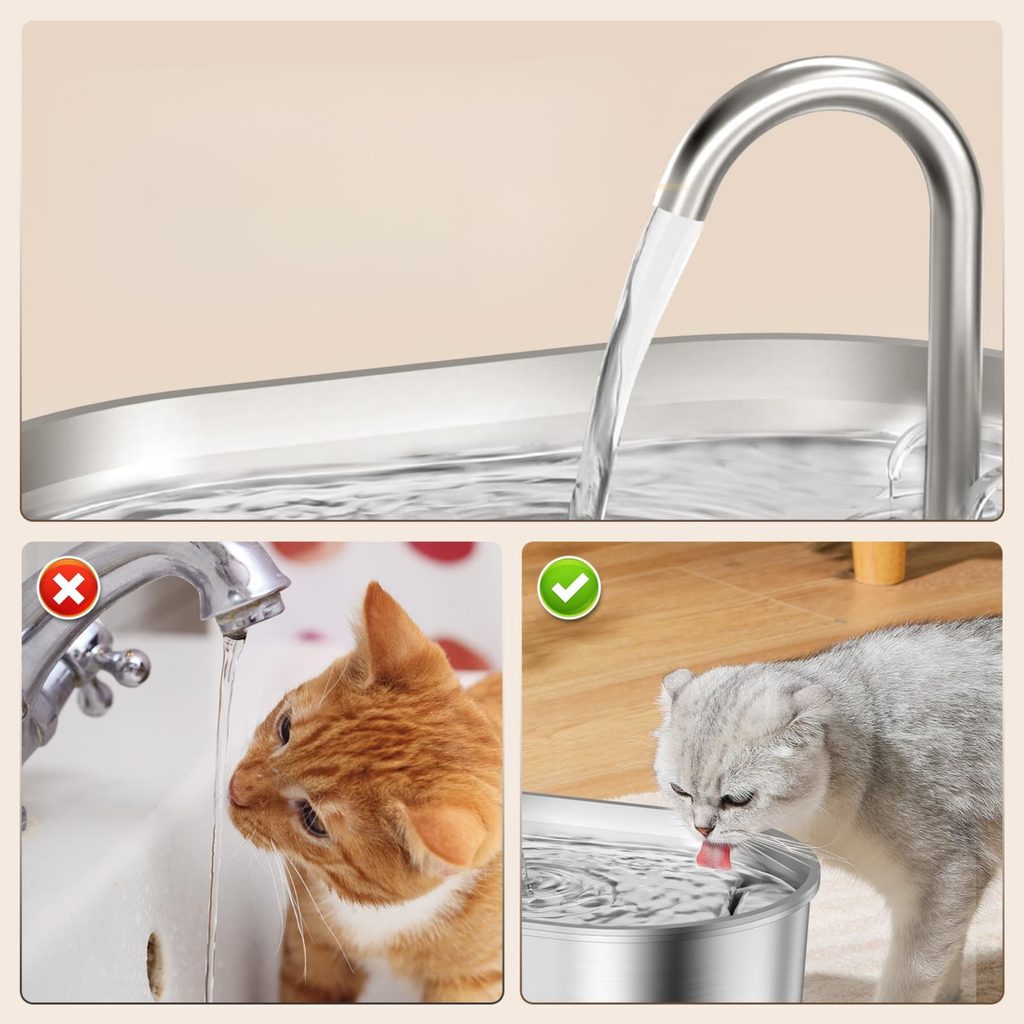 Keep your cat hydrated in style! The Petwant PWS-162B stainless steel cat fountain with tap encourages cats to drink and has a capacity of 2.2 liters. The fountain ensures your cat has a continuous supply of drinking water, is ultra-quiet, has a hygienic stainless steel design, and stylish LED lighting. It is easy to clean and maintain.